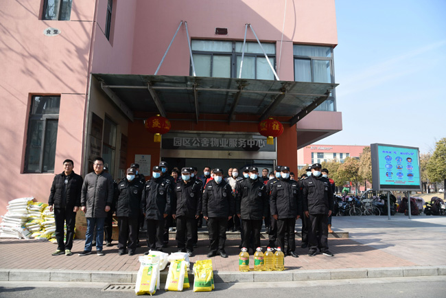 在新春佳節(jié)即將來臨之際,2月7日上午,公司副總經(jīng)理倪松慰問了奮戰(zhàn)在一線保潔及保安人員,為他們送上了米、面粉、油等慰問品。